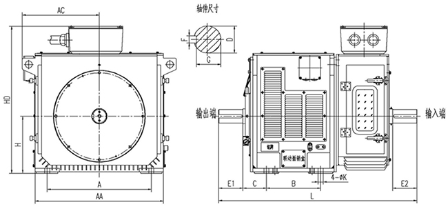 表1 YORQ短系列永磁耦合調(diào)速器外形及安裝尺寸表(機座號355~630)
